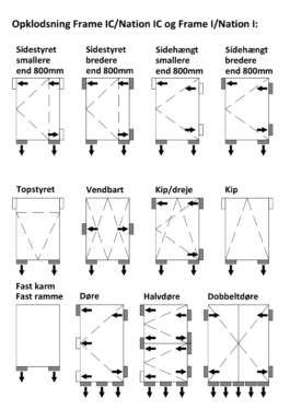 I lukket stilling holdes rammen oppe af en ramme løfter. Ramme løfteren kan løbende højde justeres, så rammen ikke kommer til at hænge.