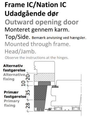 Rammen kan justeres lidt op eller ned på justeringsskruen ved karmfæstet.